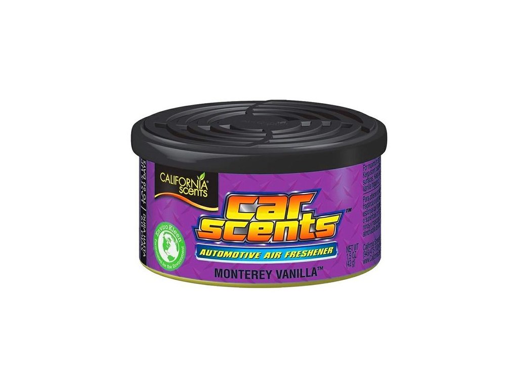 Jedinečná a smyslná vůně amerického výrobce California Scents je dlouhotrvající vůně v recyklovatelné hliníkové plechovce, která obsahuje tři bloky lisovaného lnu napuštěného parfémem. Umístěte ji pod sedadlo nebo do držáku a užívejte si příjemnou vůni, jejíž intenzitu si přizpůsobíte prostým otočením regulátoru. Nejen, že zaplní interiér půvabnou vůní, ale také překryje jakýkoliv zápach a hodí se jak do auta, tak i do domácnosti nebo kanceláře.