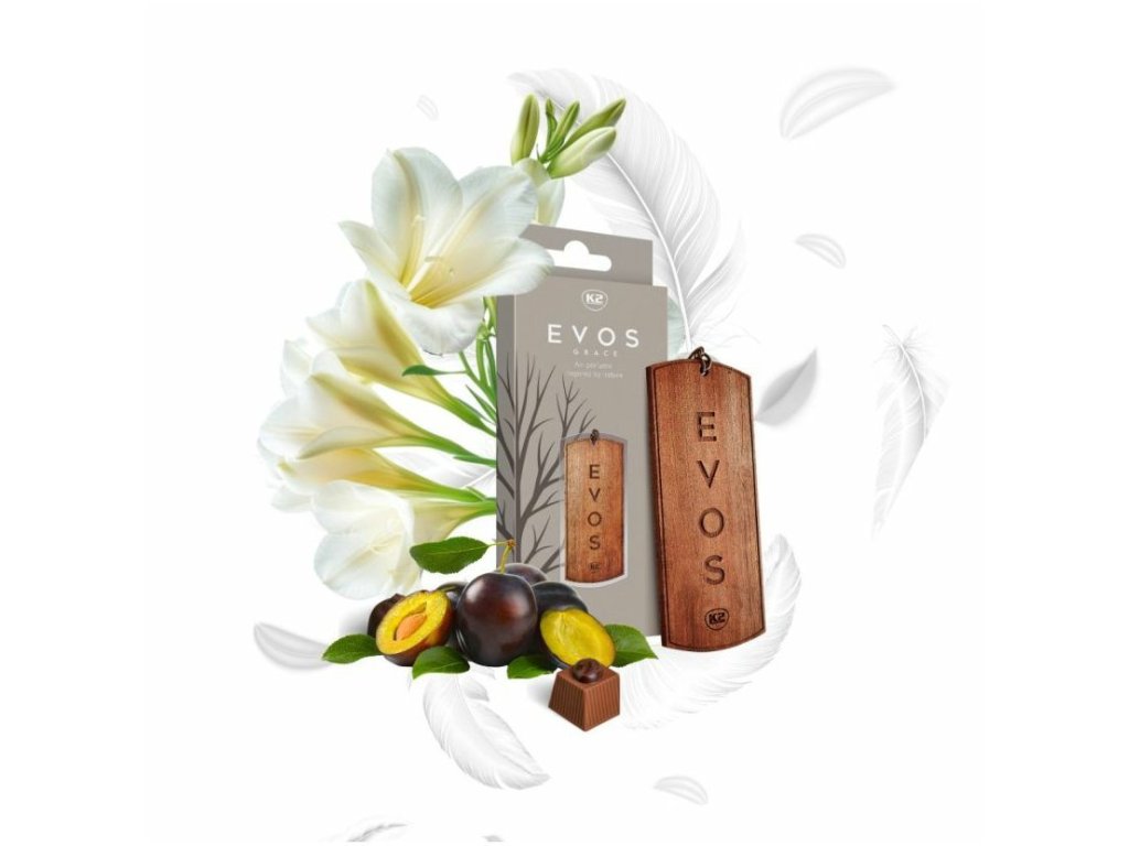 K2 EVOS Grace je neobyčejný osvěžovač vzduchu do auta v podobě dřevěného závěsu inspirovaného přírodou a plného šarmu. Je vyroben z masivního dřeva s oboustranným gravírováním a zdobí interiér vozu jako voňavý šperk.