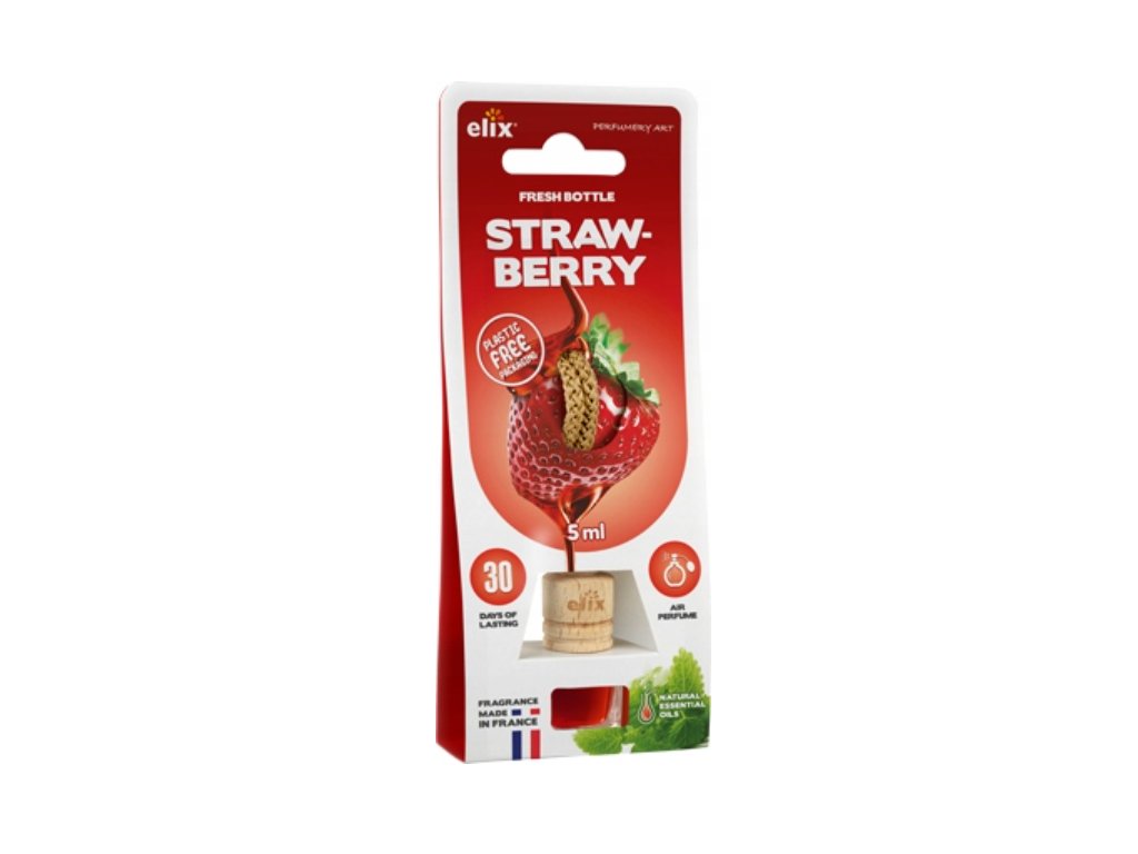 Fresh Bottle Strawberry je skleněný osvěžovač vzduchu s dřevěným víčkem a provázkem, který uvolňuje uklidňující vůni šťavnatého ovoce doplněnou teplou vanilkou bez použití plastu. Je to spojení estetiky, vůně a ekologie.