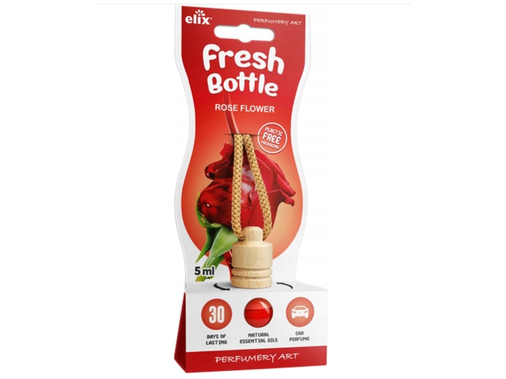 Fresh Bottle Rose je skleněný osvěžovač vzduchu s dřevěným víčkem a provázkem, který uvolňuje jemnou, a přitom výraznou vůni spojující svěžest přírody s květinami.