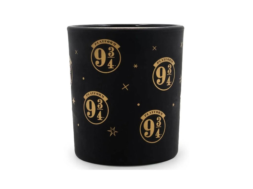 Vonnou svíčku Harry Potter 9 3/4 Black ocení zejména fanoušci tohoto hlavního hrdiny stejnojmenné knižní a filmové série. Černou skleněnou nádobku zdobí zlatý nápis Harry Potter a číslo nástupiště 9 3/4, ze kterého odjíždí studenti Školy čar a kouzel Bradavickým expresem. Svíčka nabízí květinově ovocnou vůni, bavlněný knot a vosk ze směsi parafínu a řepkového oleje. Vonná svíčka Harry Potter 9 3/4 Black vydrží hořet až 30 hodin, po jejím vyhoření vám zůstane atraktivní skleněná nádobka do sbírky.