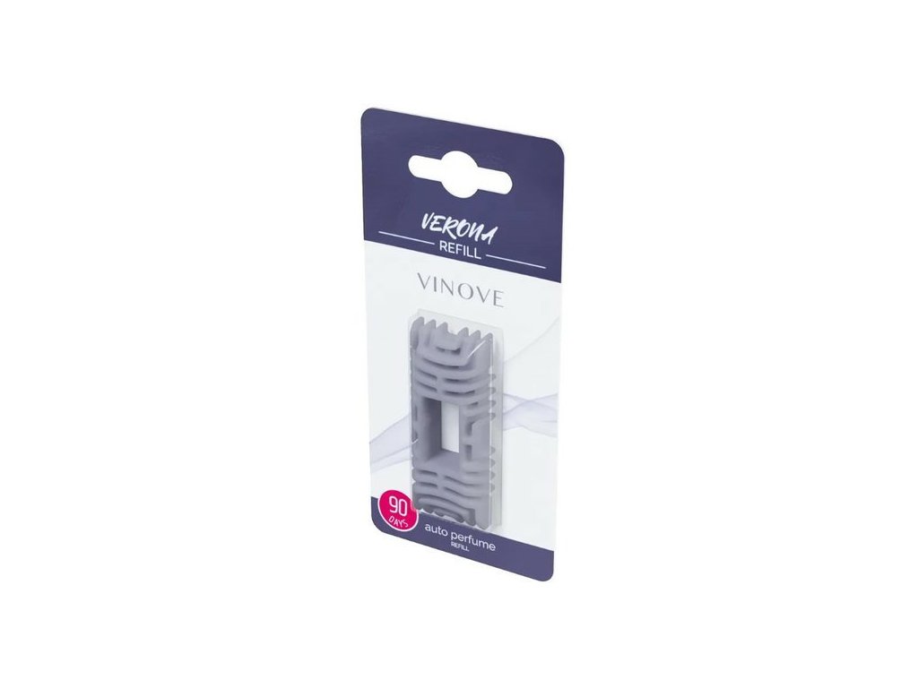 Náhradní náplň pro osvěžovač vzduchu VINOVE, osvěžovač vzduchu do auta určený pro přichycení do mřížky ventilátoru. Kombinuje francouzské parfémy a italský design. Vůně je pomalu uvolňována až po dobu 90 dní při průměrném používání vozu a při mírných teplotách.